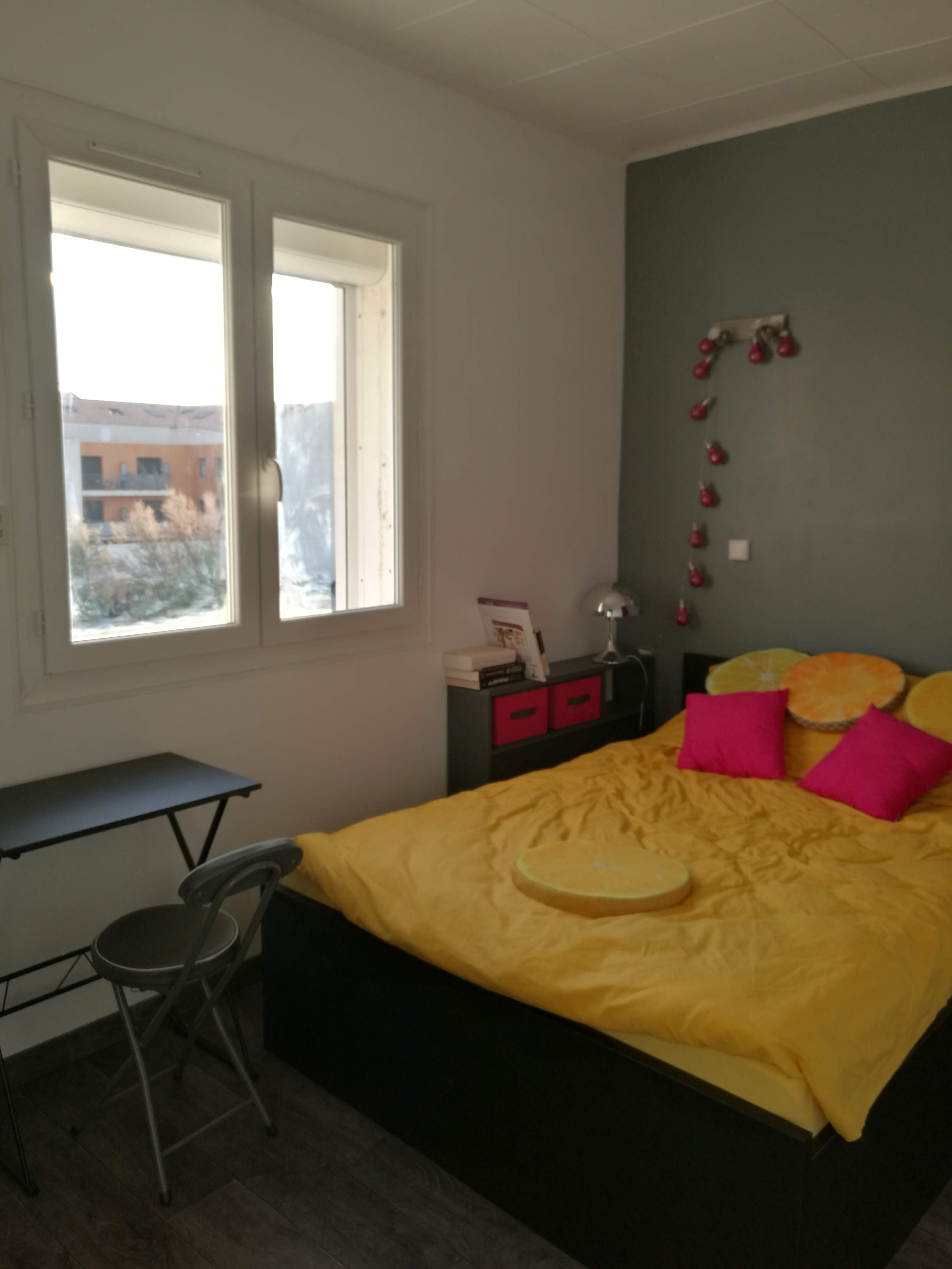 Proche commerces, restaurants, arrêt de bus, parking payant devant l’immeuble.
