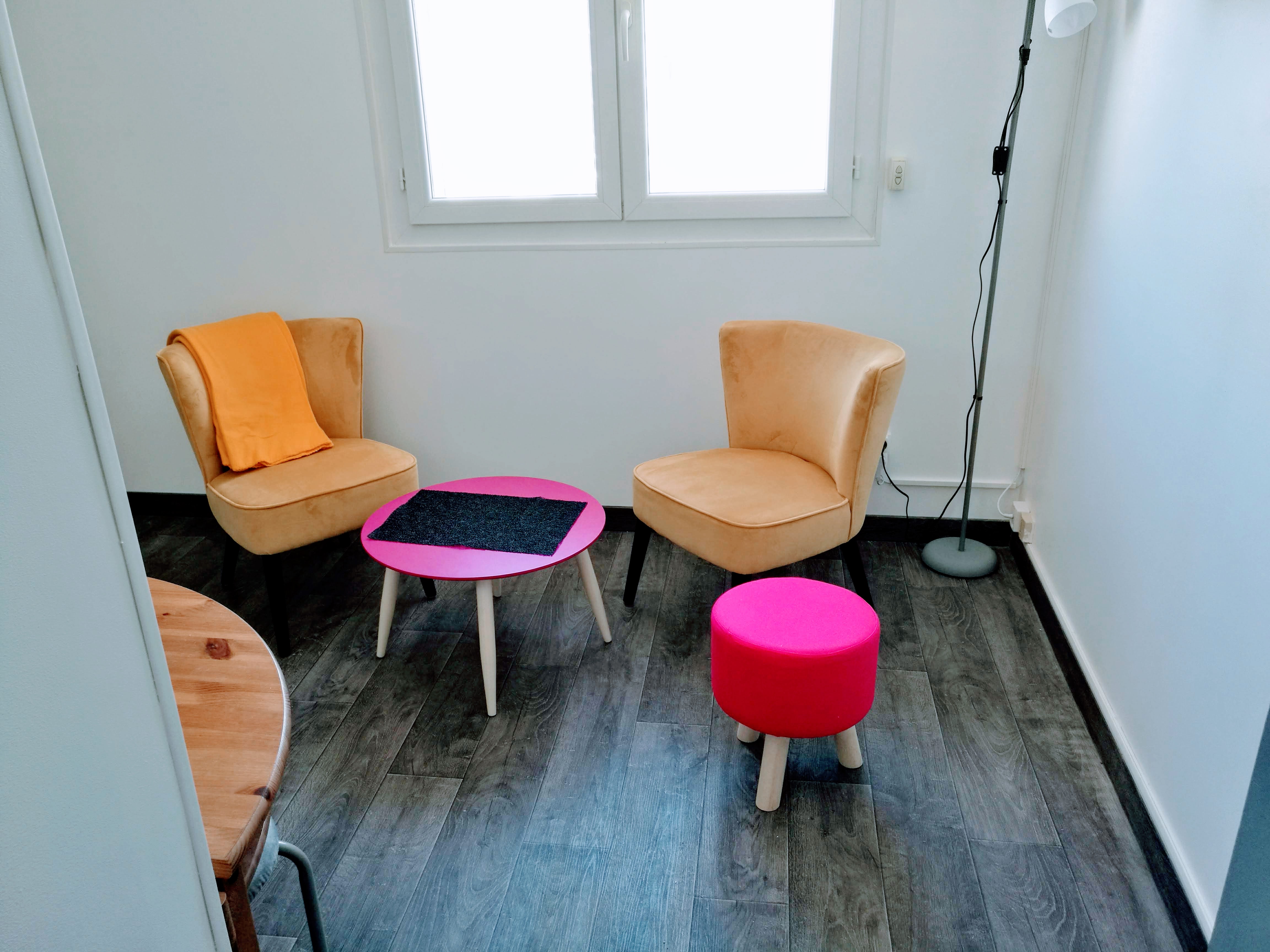 Une table ou un bureau pouvant accueillir un ordinateur portable, et une chaise pour travailler
